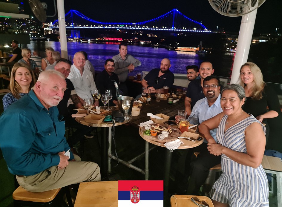 Team DOWSP at the second monthly cultural dinner. Dan Popvic organised a Serbian night at the Bavarian Café in Brisbane.