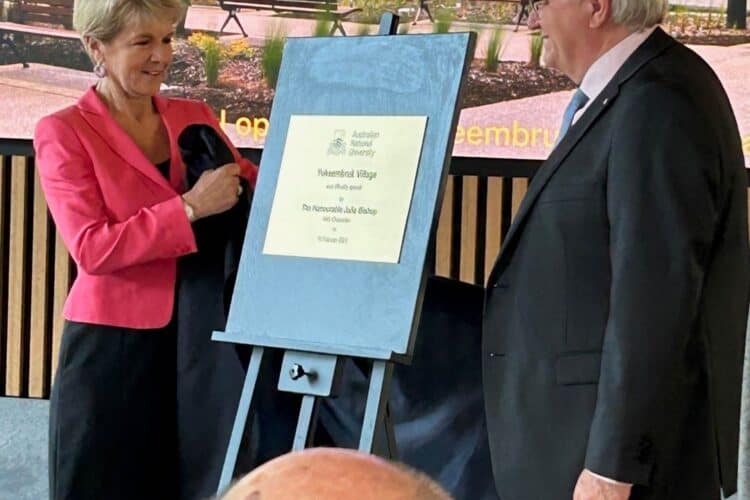 Yukeembruk was officially opened on Friday, 10 February 2023 by ANU Chancellor The Hon Julie Bishop and Vice-Chancellor Professor Brian P. Schmidt after a traditional smoking ceremony by Aunty Matilda House, a proud Ngambri Elder.