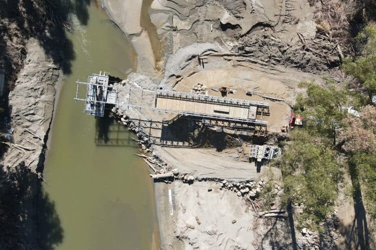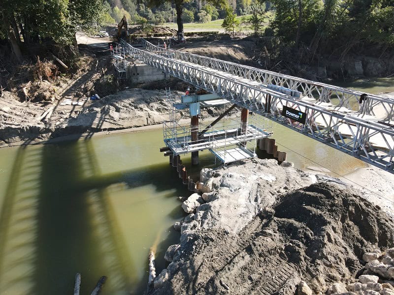 With Berketts Earthmoving concentrating on shifting the mountains of silt and creating the approaches to the bridge, Lattey Group installing the piles, and Fulton Hogan overseeing the mahi, Downer were able to quickly deliver and install the Bailey bridge.