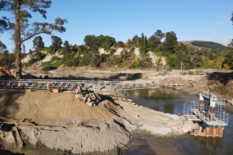 On Friday 31 March 2023, four weeks after the cyclone struck, a temporary Bailey bridge was opened largely in thanks to a display of true industry collaboration. Downer joined the Hastings District Council, Berkett Earthmovers, Fulton Hogan, Lattey Group, many subcontractors, and locals in the effort to establish a reliable and safe route across the awa (river).