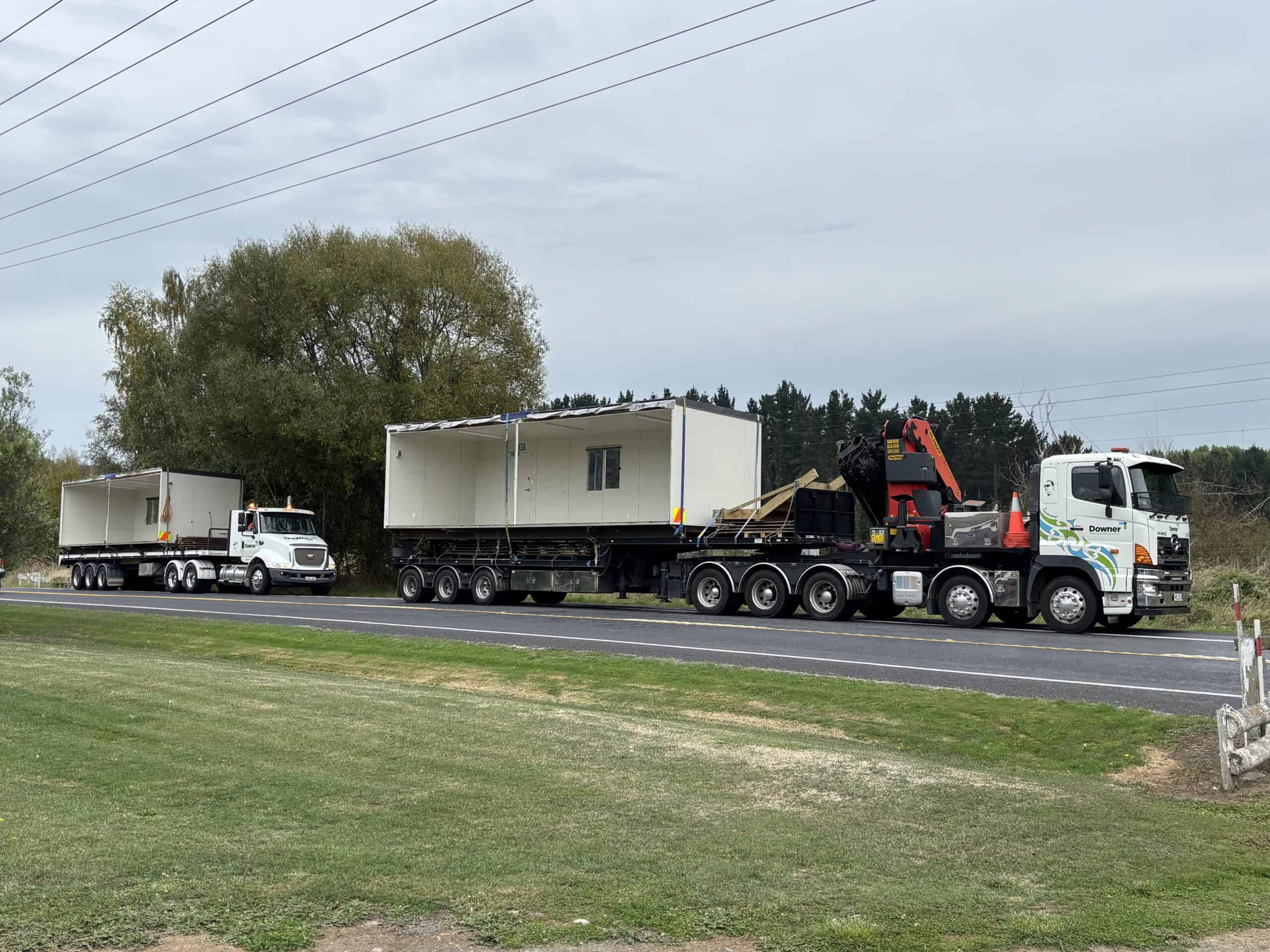 Large Hiab and truck delivering Prefab cabins to Winiata Marae in Hamilton.