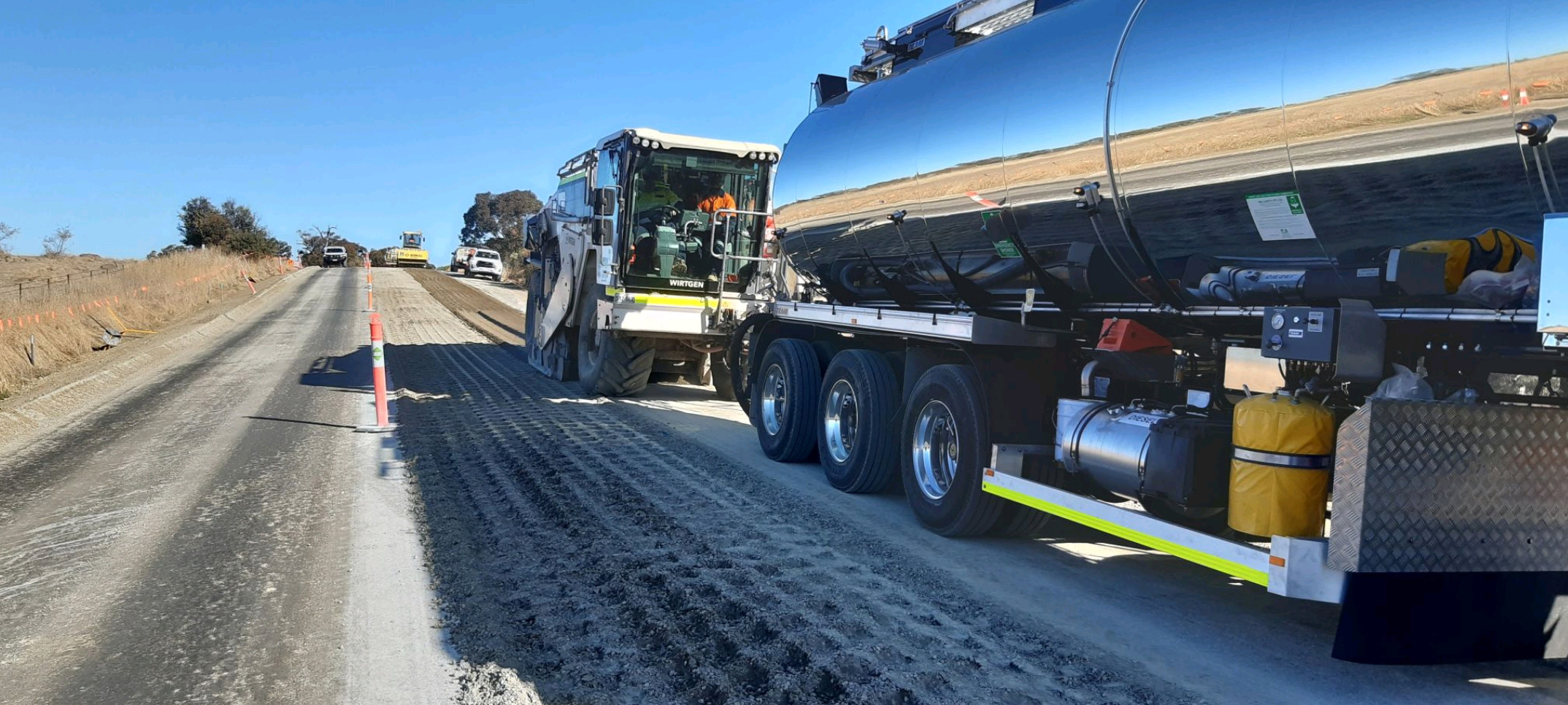 Our innovative bitumen emulsions provide several safety, sustainable and quality outcomes. Bitumen emulsions are applied at lower temperatures —– improving safety outcomes by significantly reducing burns and explosion risks and offer up to 50 percent lower carbon emissions. Their strong adhesion and versatility in both dry and damp conditions make them a reliable choice for a range of environments, including State Highways, regional roads and remote networks.