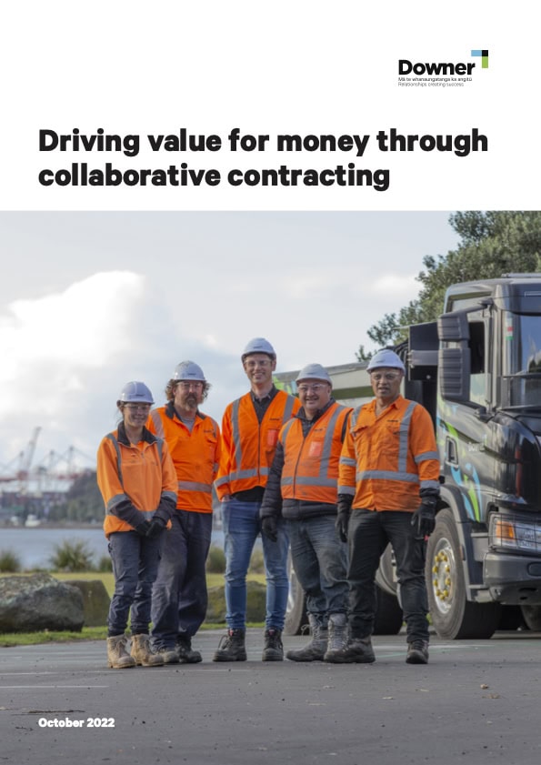 Cost escalation, risk allocation, resource squeeze, and economic uncertainty are challenges that can influence contract decisions and future outcomes. Collaborative contracting and working arrangements will help our industry to manage uncertainty and risk, and undertake larger, more complex tasks. Written by Downer thought leaders Dave Nicholls, Whanganui Alliance Manager, and Chris Edsall, Regional Director Waikato, this whitepaper explores how we can find answers to our challenges through collaboration and collaborative contracting to achieve best-for-country outcomes.