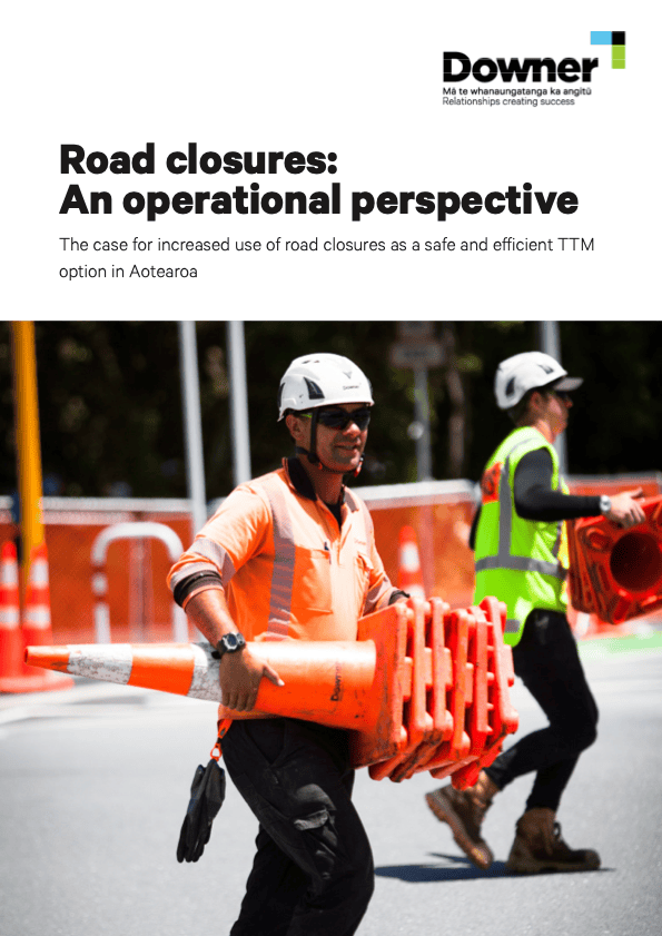 The paper underscores a ‘safety first’ approach aligned with New Zealand’s vision of zero road fatalities and serious injuries. Using relevant Downer case studies, the paper argues that well-planned road closures can mitigate risks to road workers and the public, while improving productivity.