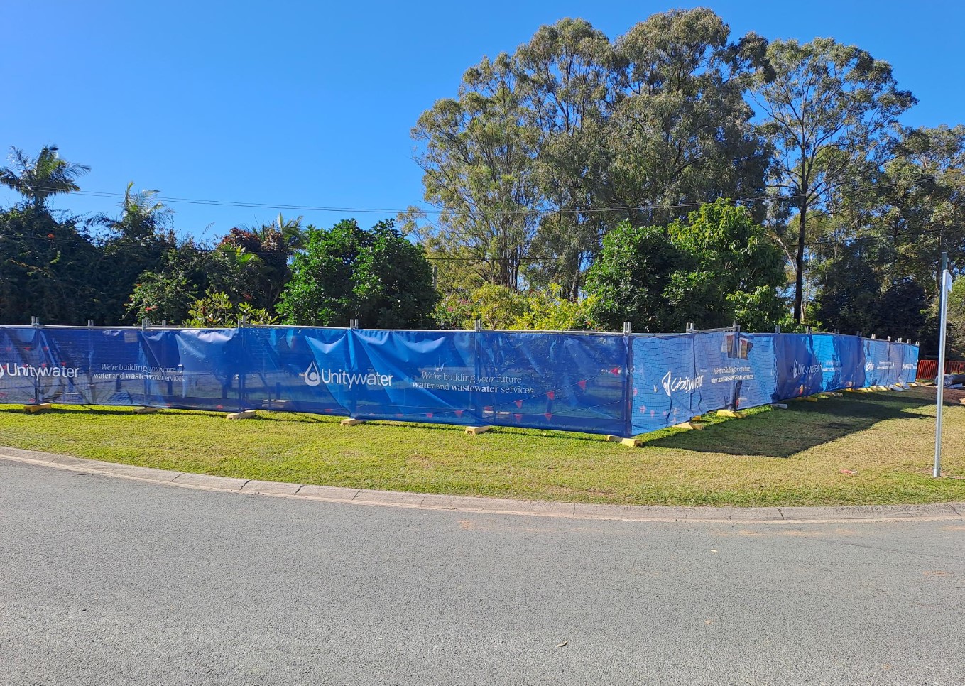 In collaboration with our client Unitywater, Climate One, will collect used banner mesh and recycle it into new products, including corflute signs which can be re-used for project signage on site.